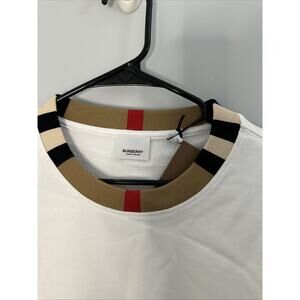 $510 NWT BURBERRY JARRAD WHITE COTTON ICON STRIPE COLLAR BLACK LOGO SWEATER XL