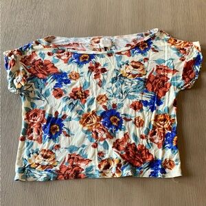 Vibrant floral print. Short sleeves. Lightweight fabric. Perfect for casual wear. From PacSun Checks & Stripes brand Size Small (tag faded) Worn but still has a lot of use left in it! (Some light pilling as pictured) Floral print Off shoulder 🌈Bundle 5 items from my closet with this symbol to get all 5 for just $10🌈