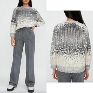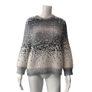 $510 Peserico Gray White Suri Alpaca Dégradé Jacquard Sweater size IT 40/4