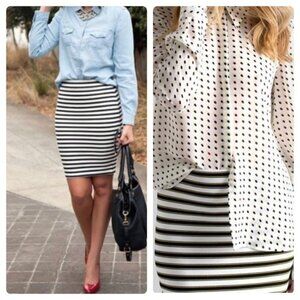 5/$100 SALE - A.L.C Marilyn Black White Yellow Striped Knit Pencil Skirt