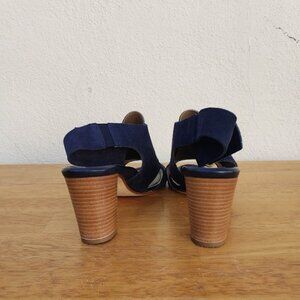 5/$100 SALE - Anyi Lu Blue Suede Athena Wood Heel Dress Sandal