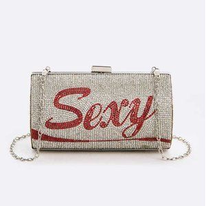 5/$100 SALE - RHINESTONE ICONIC "SEXY" Print Cylinder Box Clutch