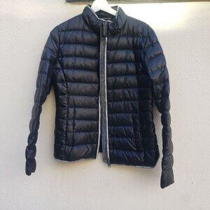 5/$100 SALE - SAND Lightweight Packable Down Black Puffer Coat Metallic Trim