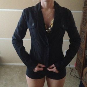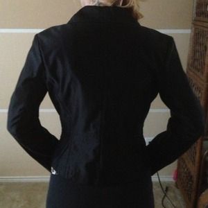 Black Jacket size small bought at target on way to meeting worn one arms are a little long to be a small.