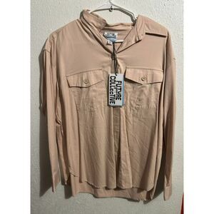 511 Beige Button-Up Long Sleeve Utility Shirt Jacket Fall Winter Layering Top