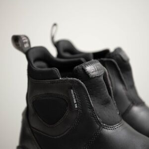 511 Steel Toe Tactical Black Leather Boots Oil/Slip Resistant Men's 7 / W 8.5. These boots are lace free easy pull on style with reinforced steel toe, perfect for heavy duty work! These boots are in excellent preowned condition! Looks like they were rarely used except for a small digit in the back rubber of the right shoe. See pictures. Tread looks unworn and over all excellent shape!