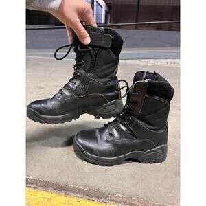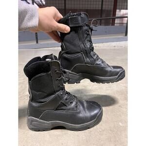 Good pair of men’s tactical combat boots by 5.11. Atac 8” side zip black leather.