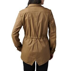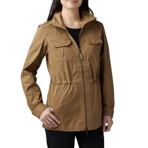 Women's Zip-Up Drawstring-Waist Field Jacket by 5.11 Tactical, US Size M, Green, Stand-up collar, Dual chest patch pockets, flaps with snap closure, Welt hand pockets w/ zip secured closure, Internal drawcord through tunneled waist, Vent at back hem, 2-way zipper for center front placket with chin guard, Articulated sleeves