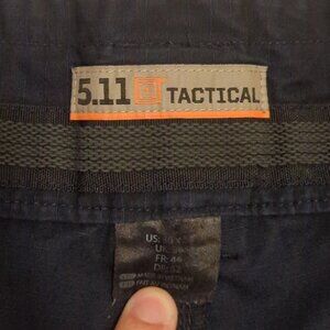 5.11 Tactical Taclite EMS pants. Men's tag size 38x32, measures like 35x32, with lots of stretch in the waist. Navy blue color. 65% polyester, 35% cotton, with ripstop. Style code 74363-724