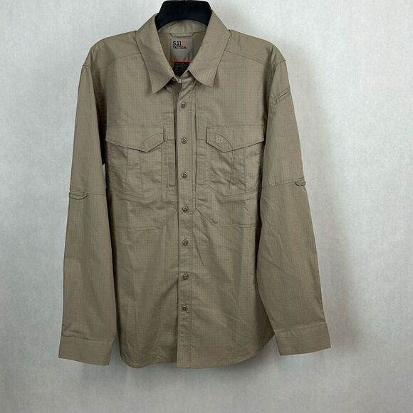 5.11 Tactical Mens Button Front Shirt Sz Medium Khaki Tan Long Sleeve