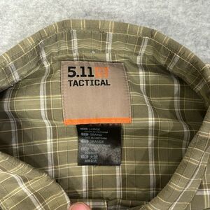 5.11 Tactical Mens Plaid Button Down Shirt Size Large Green White Short Sleeve (272)
