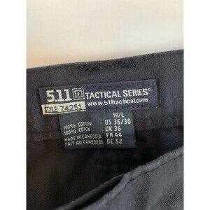 This is a pair of 5.11 Tactical Original Canvas Cargo Pants in blue, designed for men in size 36x30. The pants feature a cargo style with elastic waist, flat front, and straight leg. Made of cotton fabric, they have a comfortable fit and come with cargo and slash pockets. The design includes button and logo accents, suitable for occasions like travel, casual wear, or work attire. Perfect for those looking for durable and functional pants with a touch of style.