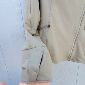 5.11 Tactical overlay zip collared neckline active wear jacket. Side zip pockets with sleeve pockets to put your essentials when running. Thumb holes. In excellent like new condition no flaws.