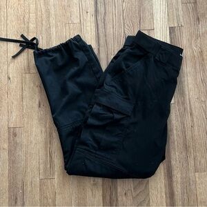 Action waistband and 8 total pockets including strap-and-slash seat pockets