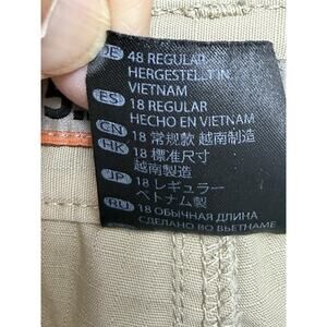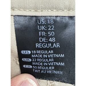 These 5.11 Tactical Pants for women in size 18 regular are designed in a khaki ripstop fabric, perfect for work or casual wear. With a mid-rise and straight leg style, these cargo pants feature multiple pockets for functionality. The solid beige color and logo accents give them a versatile yet stylish look, suitable for all seasons. Easy to care for with machine washable instructions, these pants are a practical and durable addition to any wardrobe.