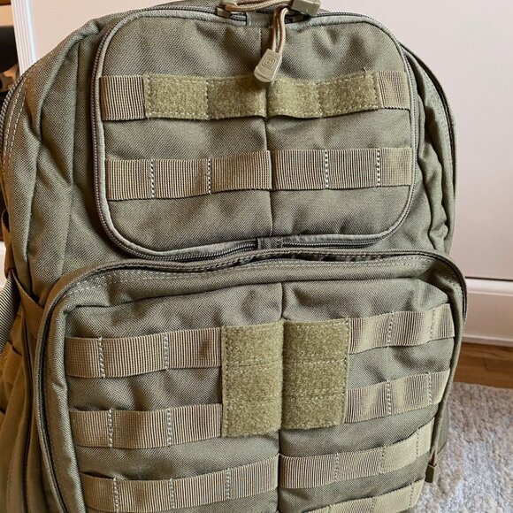 5.11 Tactical Rush 24 backpack. This is the original design, not the latest 2.0 redesign. Color is the now discontinued sandstone. Like-new condition, no issues.