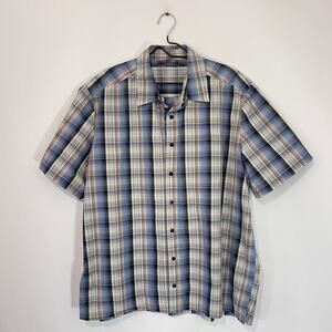 5.11 Tactical Series Snap Down Shirt Mens XL Blue, Plaid with Mulicolor Striping, "Classic Covert" with Concealed Mesh Pockets, Side Slits. NRA Embroidered on the Sleeve. Durable Fabric, Style #71198. Excellent condition. Cotton/polyester blend.