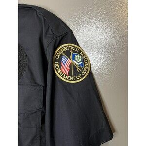 Features: Button-front; shoulder epaulets; dual chest pockets with button flaps; hook-and-loop badge circle on chest; hook-and-loop name tape panel over chest pocket; embroidered CT Department of Correction patch on sleeve.