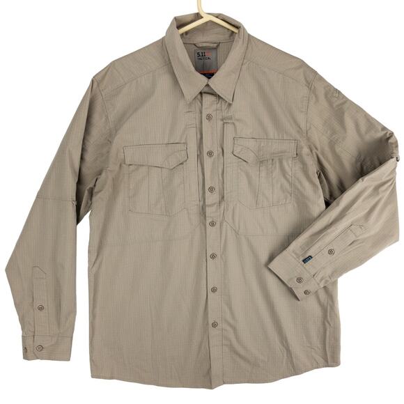 5.11 Tactical Shirt Men’s Large Tan Canvas Ripstop Relaxed Fit Utility Workwear