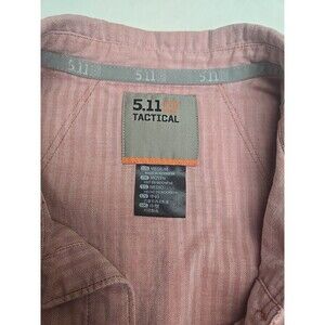 5.11 Tactical women's size medium red tweed long sleeve snap button top with collar. Roll tab sleeves with chest pockets and concealed carry hook and loop closure chest pocket. Pocket on sleeve for writing utensils. Small blend on front. See picture.