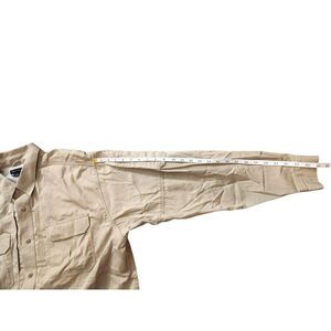 5.11 Tactical military/field shirt button up Men's XL. Multiple pockets tan vented mesh back vented pits. Good pre-owned condition no stains no holes measurements provided in pictures are approximate please check measurements for proper fit
