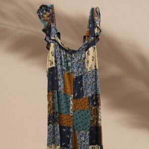PATCHWORK RUFFLE SLEEVE JUMPSUITS