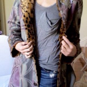 This coat is amazing. It is Reversible. One side is faux leopard and the opposing side is a soft muted gorgeous print on suede with sequins sewn in different places. This is a Custo Barcelona coat, it is a Show Stopper. it is from this season. I wore this coat 1x and received tons of compliments.