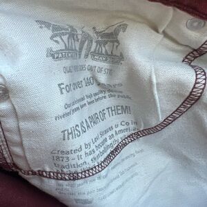 In excellent condition. Not over washed or over worn. Burgundy 5 pocket jeans. Slim in the waist with straight legs.