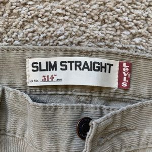 Excellent condition with slight wear of fabric (as seen in photo), 514 Levi’s, W34 L29, corduroy tan color.