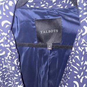 Chic Talbots jacket with a striking pattern. Ideal for a sophisticated look.