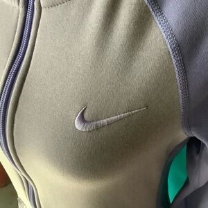 Stylish Nike hoodie with a zip-up front. Features a comfortable hood and front pockets. Perfect for casual wear.