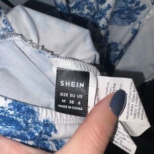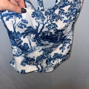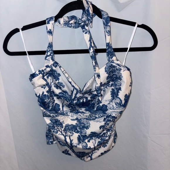 Chic top with blue and white design. Ideal for casual wear.