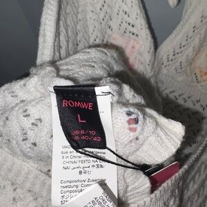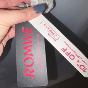 ROMWE tag with bold red text. Stylish and modern design. Fits like a medium
