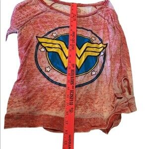 DC Comic Shirt Medium 7/9. I thought it ran small, but I tried it and it fits like a large. This T shirt is see through. Please see measurements.