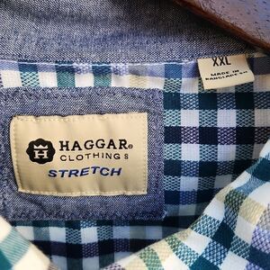 5/$15 Haggar Clothing Stretch men's XXL plaid button down business casual shirt