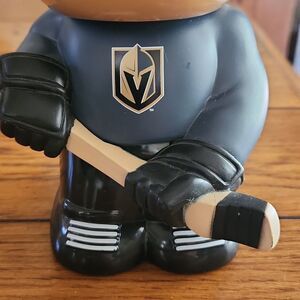 Vegas Golden Knights BIG SIP water bottle. Molded hockey player bottle that holds 16 oz. NHL licensed. About 10" x 5". Never used as a beverage cup as indicated in pictures. Just used for decor. Made by Party Animal