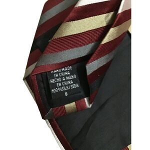 5/$15 Van Heusen 60 inch Red Cream Diagonal stripes 100% Silk Handmade Men's Tie