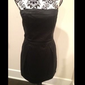 New with tags! Strapless mini dress by French Connection with corset style panel details. Wear for any occasion with this little black dress! Inverted pleats below the side of a flattering inset waist create a bit of volume in the skirt while cleverly concealing side-seam pockets. Zip fastening in back. (Last picture is to show what it looks like on a celebrity). 26.5" length. 15.5" bust laying flat.