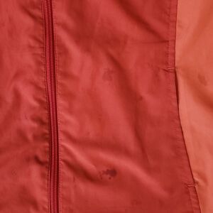 used condition Adidas windbreaker rain jacket. women's size small. There are stains on the front and sleeve. See pictures for details