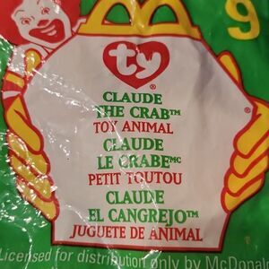 5/$15 McDonalds Ty teanie beanie baby, Claude the crab 1999