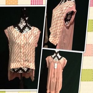 Very pretty, flowy high low top. Bought from a fellow posher but too big for me. It is a loose fitting top. Very sad that it was too big for me. :(