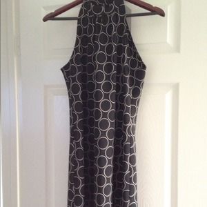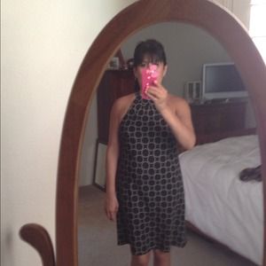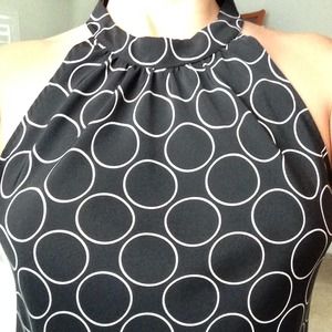 Black sleeveless dress with white circles, knee length dress. Cute for Summer with sandals for going out, with pumps for work and with boots and jacket in Fall