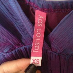 The dress itself is a crowd pleaser & a head turner. 100% silk. As you can see in the photos the dress transitions from a deep purple, to blue with a metallic look to it. It’s been worn only once and it fits true to size!!