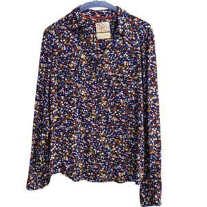 This top is 9 / 52 Conversations. It is royal blue with flowers, button up top