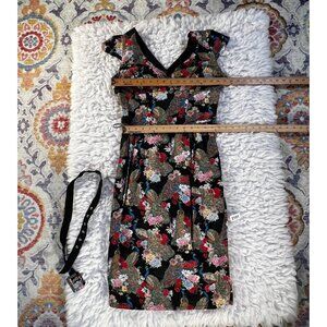 52 Greek Street Dress Belted Floral Soho London 100% Cotton Cap Sleeve