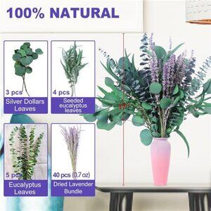 🧿💐[Best Eucalyptus Shower Set] - The package includes 12 pcs 3 kinds of eucalyptus and 40 pcs (about 0.7oz) dried lavender, 5 large stem eucalyptus, 3 silver dollar leaves, 4 Seeded eucalyptus. Satisfy your need for shower plants and bring you a fragrant Home SPA.