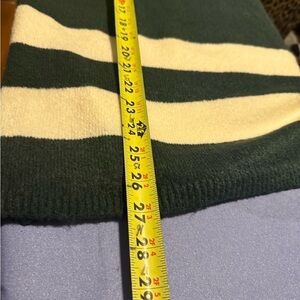 This stylish crew neck sweater features a vibrant green and cream color scheme with thick horizontal stripes near the bottom hem for a trendy color-blocked effect. The long sleeves in cream complement the overall design, while the relaxed fit ensures comfort and versatility for any occasion.