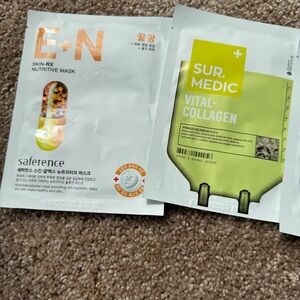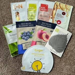 A collection of colorful face masks for skincare. Includes brightening, hydrating, and age-control masks. Lots of different types!