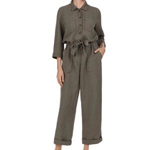 $520 EUC Women's Gerard Darel Nolwenn Khaki Army Green Jumpsuit Size 40 or 8