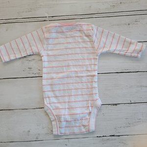 ♡ 5/$20 - Gerber Girl's White Pink Stripped Long Sleeve Bodysuit 0-3mo.